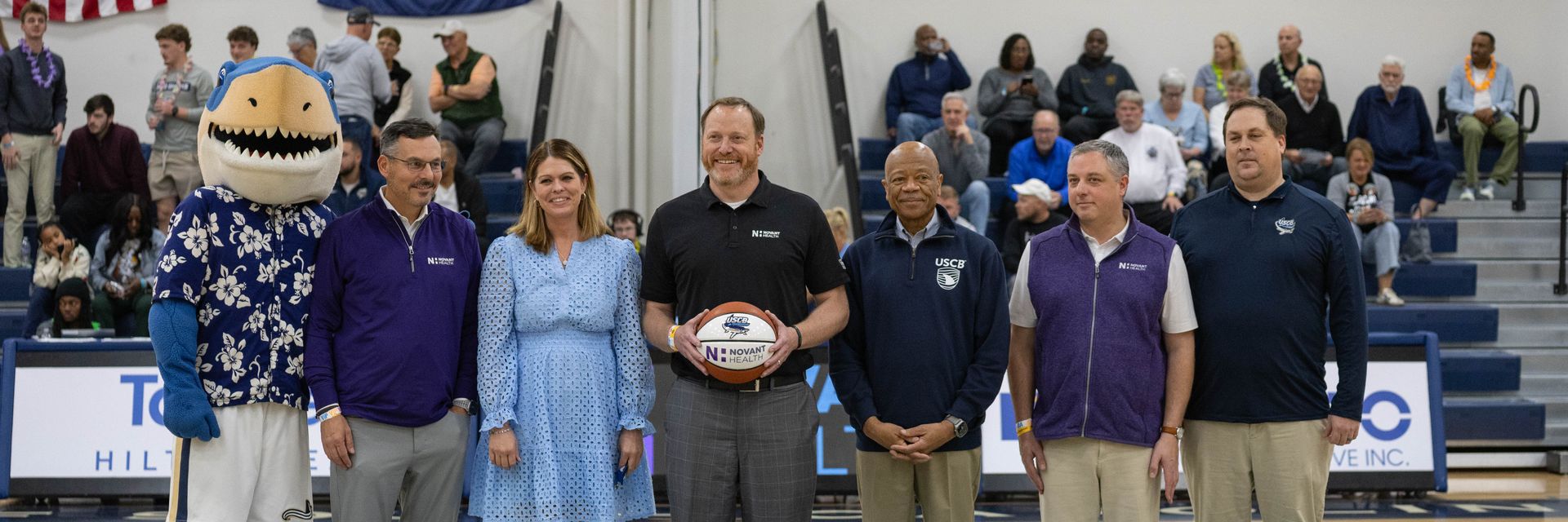 As part of the partnership, USCB has officially named its basketball court Novant Health Court. The arena, known as The Cove, will now feature the added logo on the court in recognition of Novant Health’s commitment to supporting USCB Athletics.